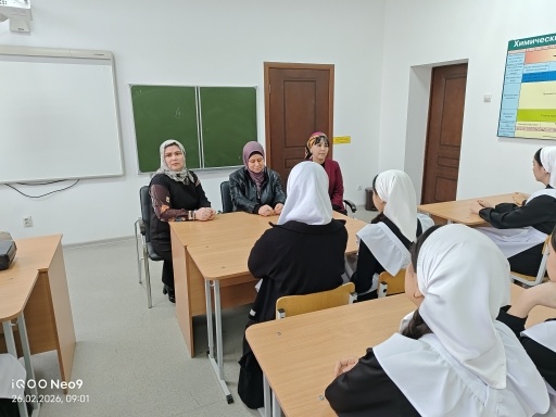 27.02.202626 февраля в рамках реализации Единой Концепции по духовно – нравственному воспитанию и развитию подрастающего поколения, в МБОУ «Сары-Суйская» прошла профилактическая беседа со школьницами 8-11 классов на тему: "Культура поведения мусульманской девушки".