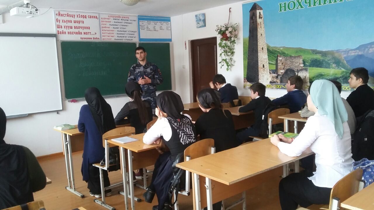 Исмаил Мусаевич рассказал о недопущении случаев хулиганства и вандализма, незаконного вмешательства посторонних лиц в деятельность другого человека или хозяйственной деятельности (организации, учреждения, транспорта и т. д.), порча школьного имущества тоже является противозаконным деянием. Дал определение понятиям «Вандалы. Вандализм» и перечислил их типы. Учащимся было доведено до сведения, что любое постороннее вмешательство незаконно, оно преследуется по закону и влечет за собой уголовную и административную ответственность.