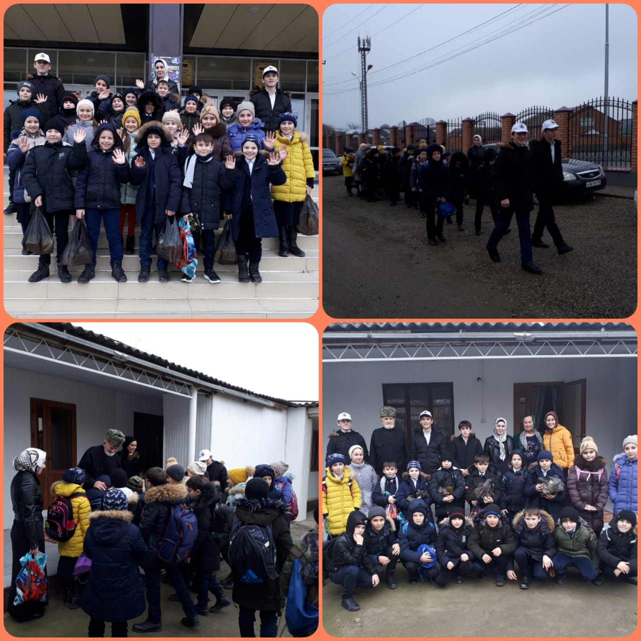 Отряд Юные " Кадыровцы " с группой учащихся 4 а класса по "Неделе добрых дел" посетили жителя микрорайона Н.Беной Хабиева Хаси на дому.