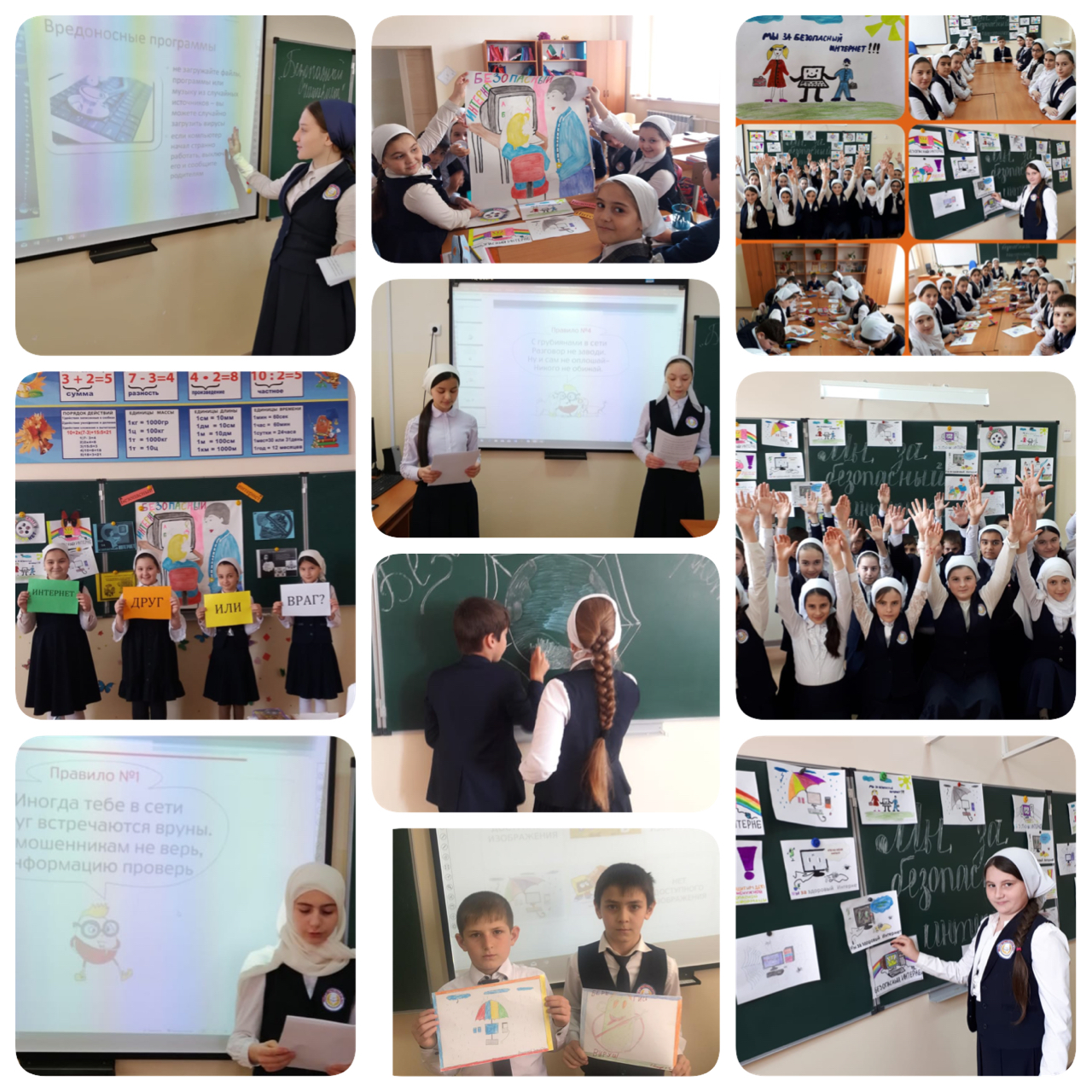 Национальный центр помощи пропавшим и пострадавшим детям при поддержке Правительства Чеченской Республики проводит акцию «Месяц безопасного Интернета» в ЧР. Проблема обеспечения информационной безопасности детей в информационно-телекоммуникационных сетях становится все более актуальной в связи с существенным возрастанием численности несовершеннолетних пользователей. В современных условиях развития общества компьютер стал для ребенка и «другом» и «помощником» и даже «воспитателем», «учителем». Всеобщая информатизация и доступный, высокоскоростной Интернет уравнял жителей больших городов и малых деревень в возможности получить качественное образование. Между тем существует ряд аспектов при работе с компьютером, а в частности, с сетью Интернет, негативно влияющих на физическое, моральное, духовное здоровье подрастающего поколения, порождающих проблемы в поведении у психически неустойчивых школьников, представляющих для детей угрозу. В рамках этой акции в МБОУ «Гудермесская СШ №8» проведены уроки и классные часы безопасного Интернета в 1-11 классах с целью обучения правилам безопасного поведения в сети Интернет. При проведении тематических классных часов учителя обратили внимание обучающихся на обеспечения информационной безопасности детей в сети Интернет. Проблема безопасности в Интернет все более актуальна, так как возрастает численность несовершеннолетних пользователей. Учителя познакомили ребят с правилами отбора информации в сети Интернет, рассказали как грамотно и безопасно вести себя в социальных сетях. Также проведен творческий конкурс на лучший рисунок «Безопасный Интернет» среди учащихся 2-6 классов и конкурс ЭССЕ «Каким должен быть безопасный Интернет» среди учащихся 8-11 классов.